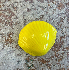 My shell turned out good overall, especially in terms of the shape and the ridges on the outside. But the dish doesnt sit well on a table since the outside of the shell is round, it is more decorative than functional. And the lines between the ridges are a little messy since i went over them multiple times, I would have liked for it to look more like on solid line But the main part I wasn’t completely happy with was my glaze choice. The yellow ended up looking very bright after firing, and it didn’t match the softer look I had wanted. My plan was to do pink but there was no pink glaze left and I picked the yellow thinking it would be a lighter shade, I should have looked at the example beforehand but it was my first day using glaze. If I could redo it, I would pick a lighter glaze, like a light blue or off-white.