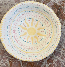 The overall shape of my sgraffito dish turned out good, but the carving process ended up being more difficult than I expected. A lot of the flowers chipped while I was working, and a larger piece broke off the edge before the dish was fired. Because of that damage, I decided not to add the clear glaze. Even though the design didn’t come out exactly how I wanted, I still learned a lot about how careful and controlled you have to be with sgraffito. If I tried this again, I would do a more spread out design that wouldn't chip so easily and I would take my time and be more careful.
